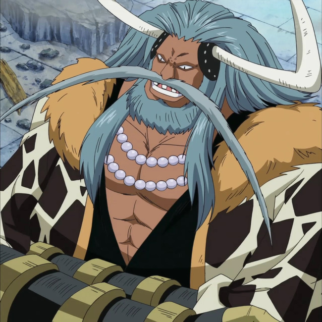 This is a photo of Avalo Pizzaro, a fictional character, Captain of the Blackbeard Pirates' No. 4, nicknamed the "Evil King" in the One Piece manga.